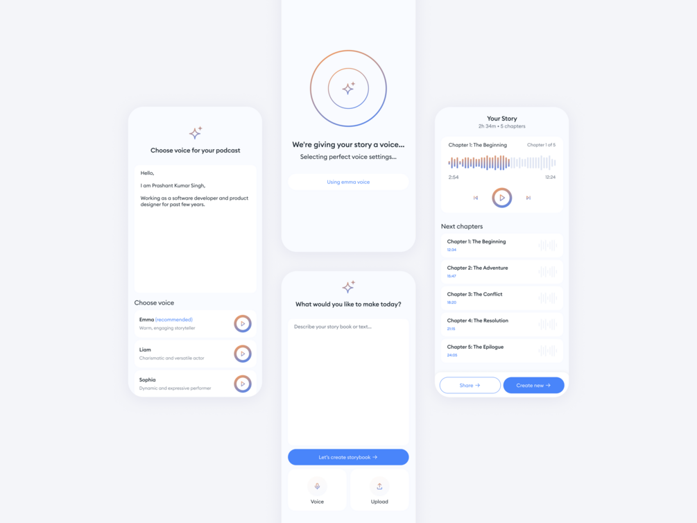 This mobile app lets you convert any document into a high-quality, AI-narrated audiobook completely offline. It’s built around invisible UX: minimal taps, no menus, just intent-driven design.